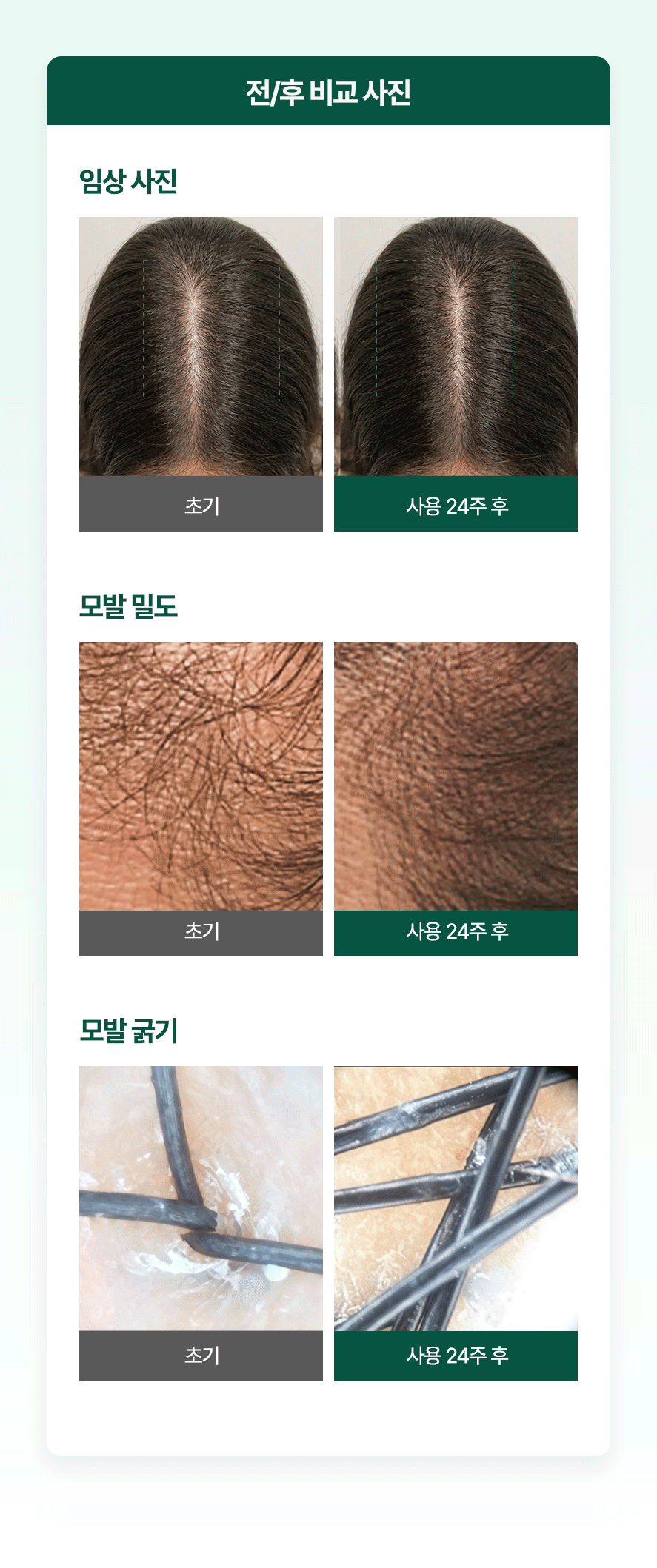 ✅ 식약처 인증 임상 완료 - 모발 밀도 · 굵기 개선 효과 입증