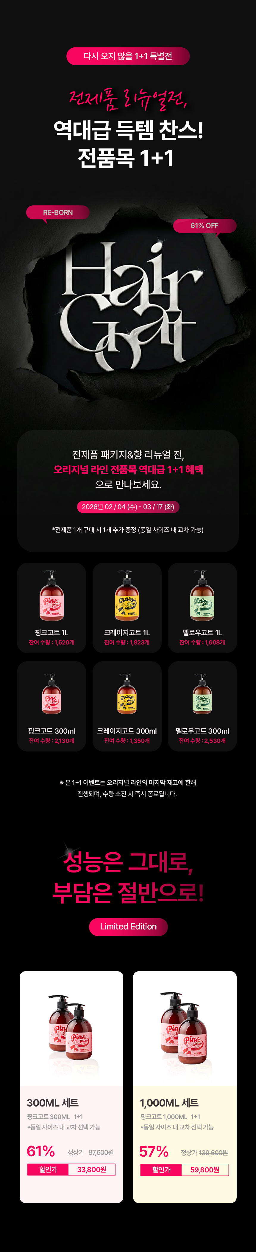 [핑크고트] 극손상모 즉각 개선 트리트먼트 1000ml