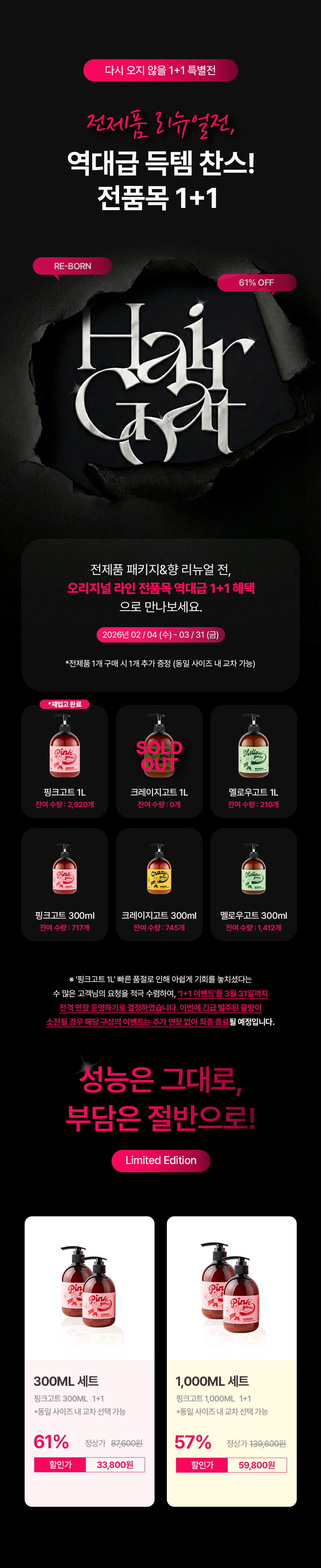 [핑크고트 1L 재입고 및 1+1 이벤트 연장 안내]